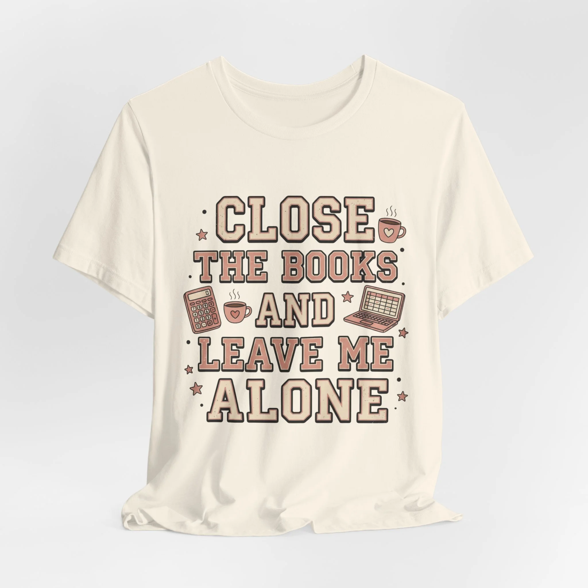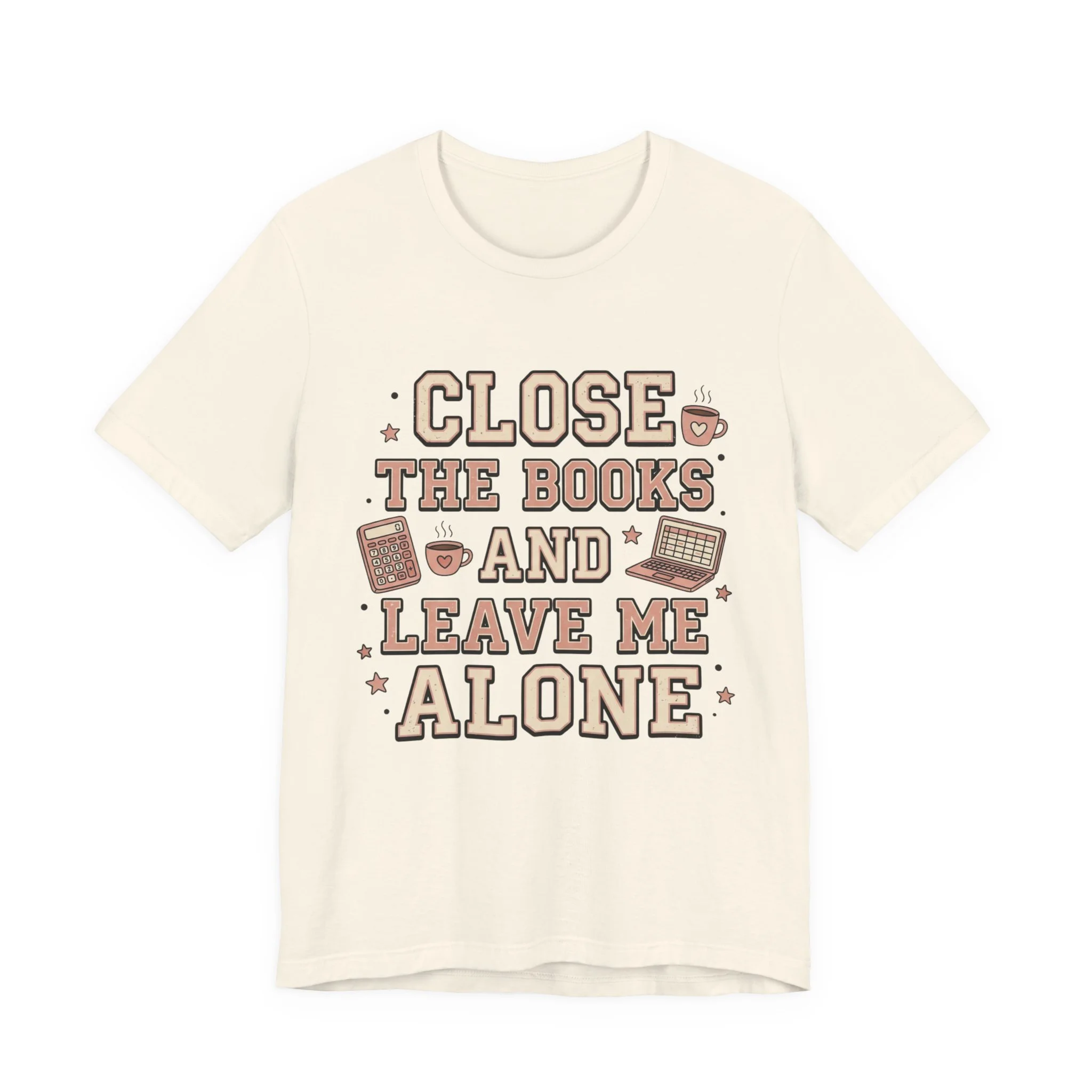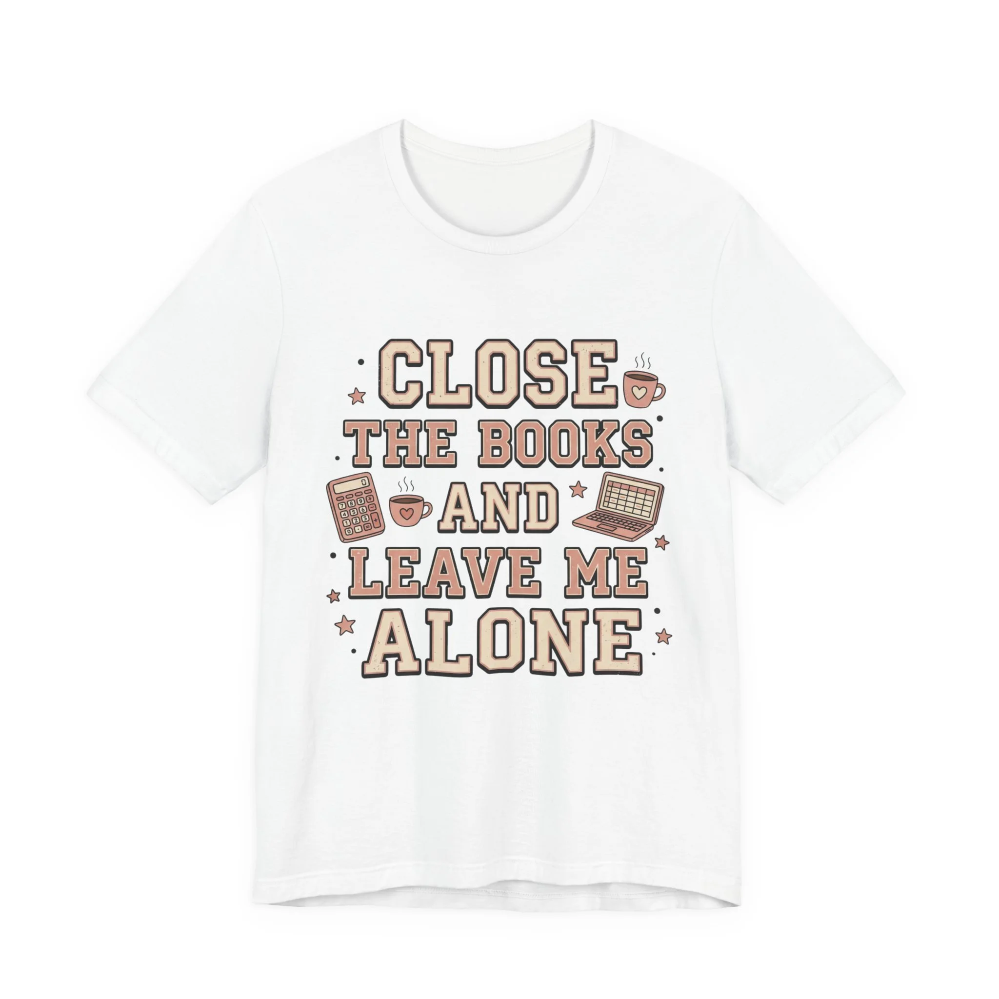 Designed with a trendy retro varsity typography style and cute accounting doodles like calculators, coffee mugs, and laptops, this tee is the perfect mix of funny and stylish for the office.