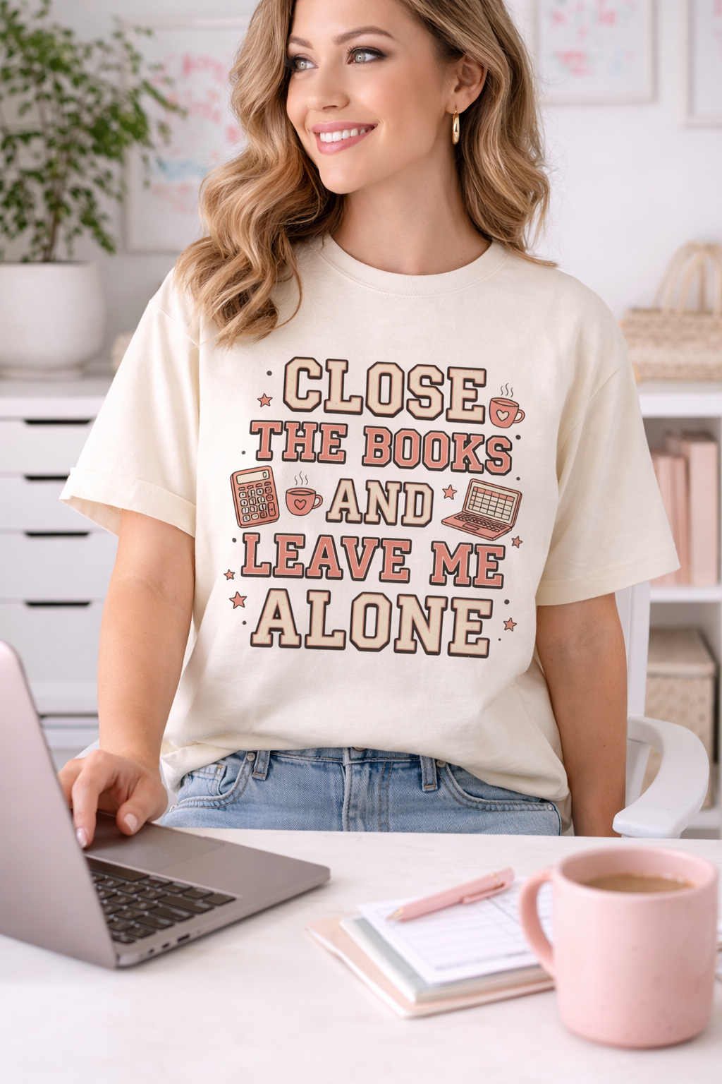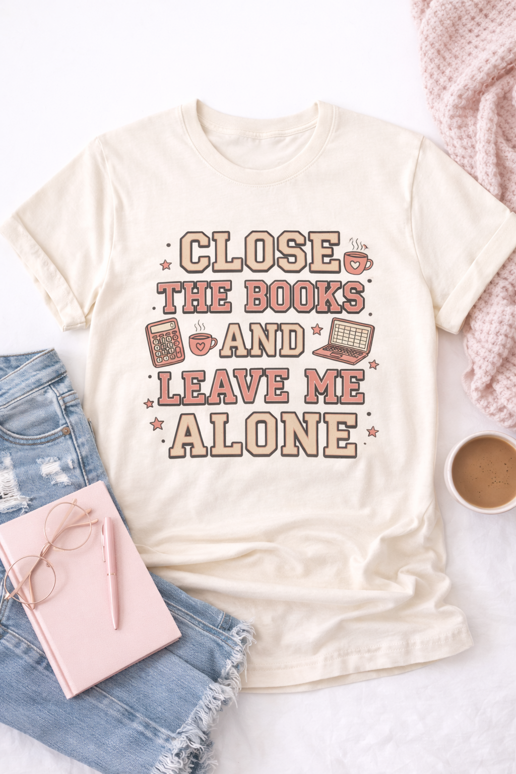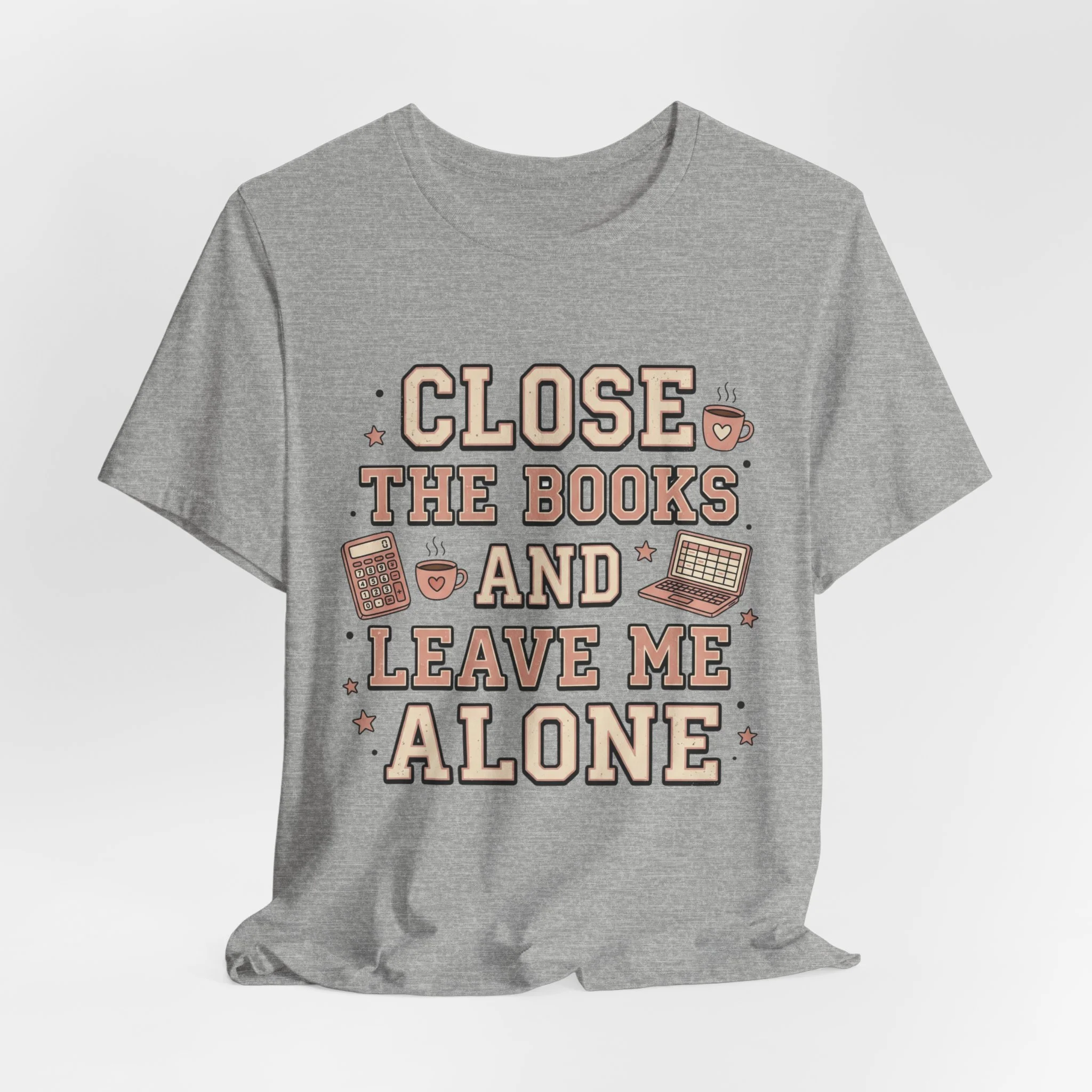 Designed with a trendy retro varsity typography style and cute accounting doodles like calculators, coffee mugs, and laptops, this tee is the perfect mix of funny and stylish for the office.